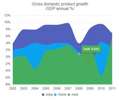 The area chart is shown below. You can define series for this chart type. Each series represents filled area on the chart.