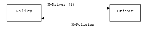 , which refers to all the policies of a driver. The relationships between objects are illustrated in the following diagram: