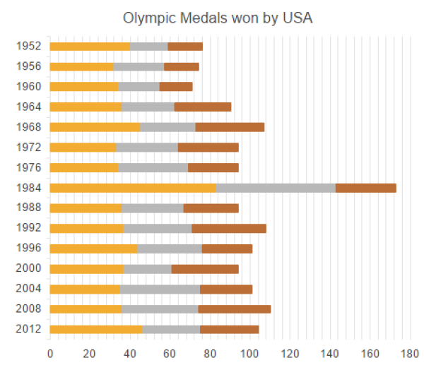 - Spacing – distance between bars of the different series as percentage of the bar width