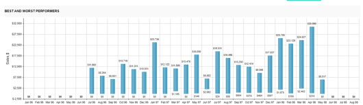 This chart can be used when there are 4 parameters that describe an item location on the chart - the category, X value, Y value and the 3rd parameter is represented by the size of the circle (see the picture below). An example of the Bubble chart is in the Sales Portal sample application (the Graphs tab)