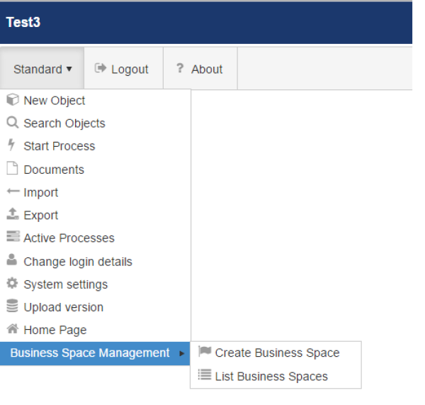 The menu is the area of the screen in the Operation Mode where the user can select actions to be performed, such as starting a process, running a query, creating or modifying an instance of a business object etc.